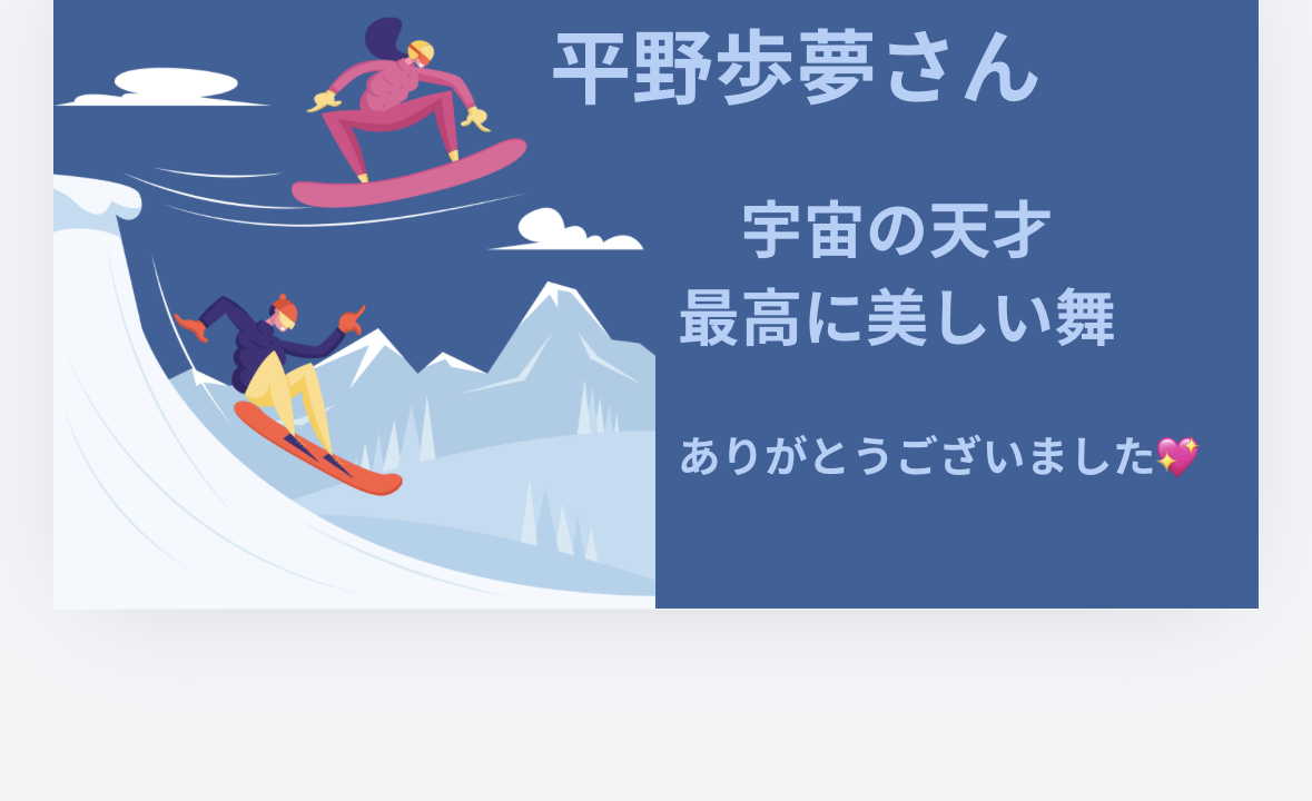 そして『夢を諦めないで』を世界中に与えてくれた、平野歩夢さん!